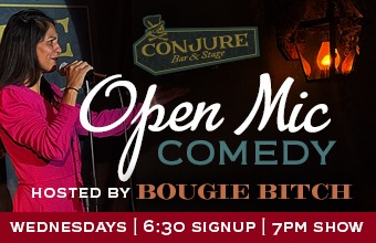 Every Wednesday: OPEN MIC COMEDY at the Conjure Bar & Stage. Sign up 6:30 | Show 7pm